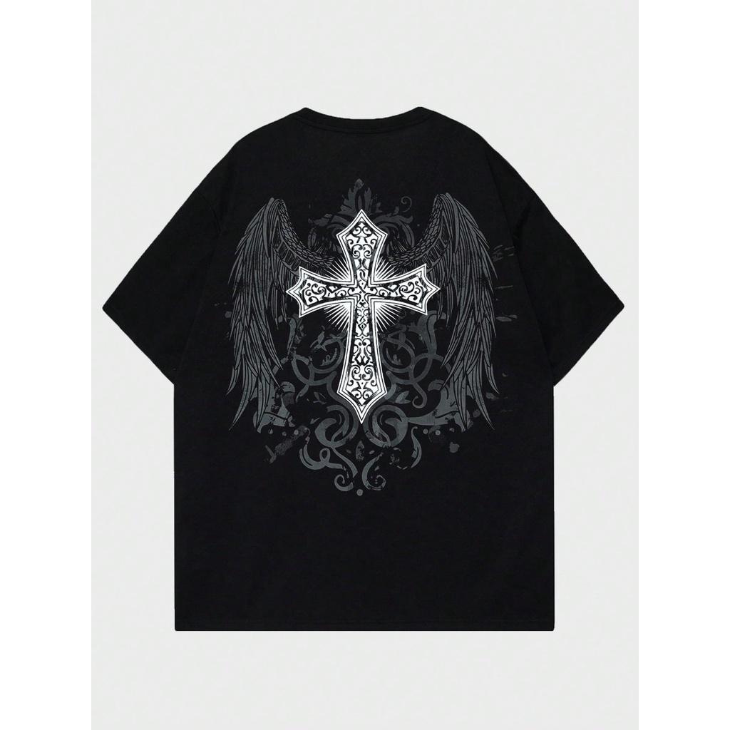 Camiseta Cruz Asas Qualidade Algodão Unissex Lançamento Gotico Emo Dark Goth Temos Plus Size Envio Rapido
