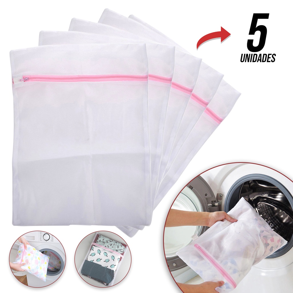 Kit 5 Sacos 30x40cm para Máquina Lavar Roupas Protetor De Roupa Íntima Lingerie Roupa de Bebê Tecido Delicado Tela Anti Bolinha