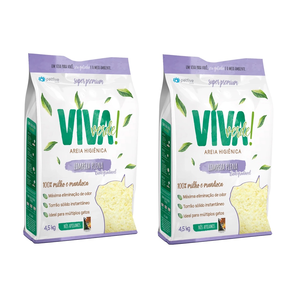 Kit 2 Areia Higiênica Biodegradável Limpeza Plena Viva Verde 4 Kg