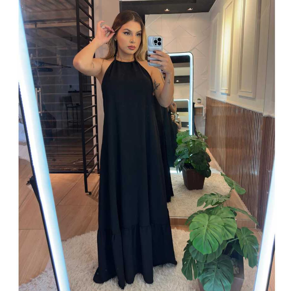 Vestido Longo SUPLEX Fenda na frente Empina Detalhe no Bumbum Festa Alca Trançado nas costa