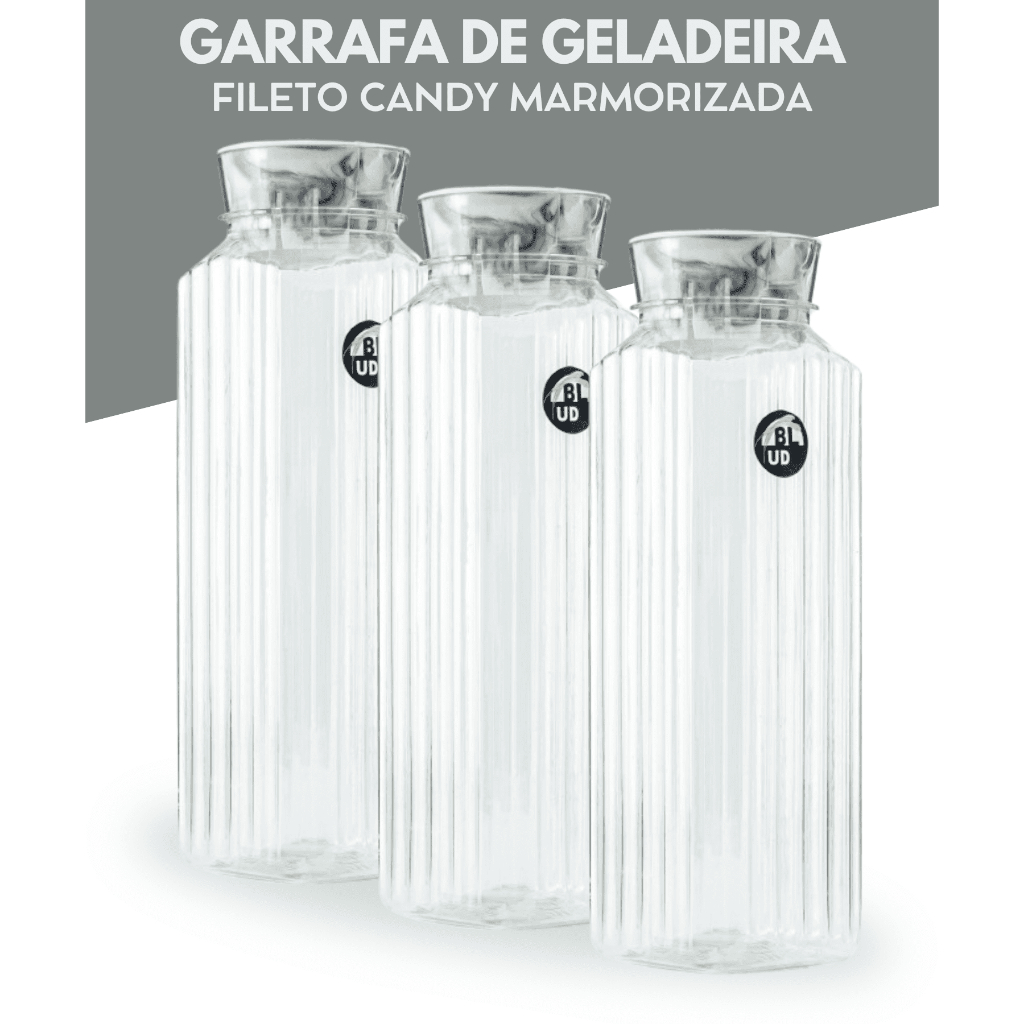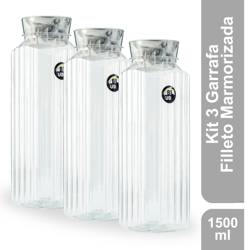 Garrafa De Água e Suco 1,5 litros Bl Festo Kit Com 3 Garrafas Fileto Cristal Marmorizada