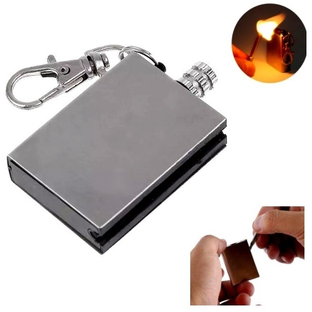 acendedor Pederneira Isqueiro Chaveiro Militar Aço Inox A Prova D'agua