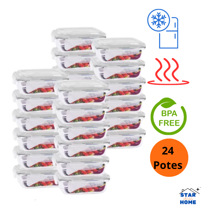 Kit 24 Potes de Vidro 640ml Hermético Marmita Fit com Tampa 4 Travas