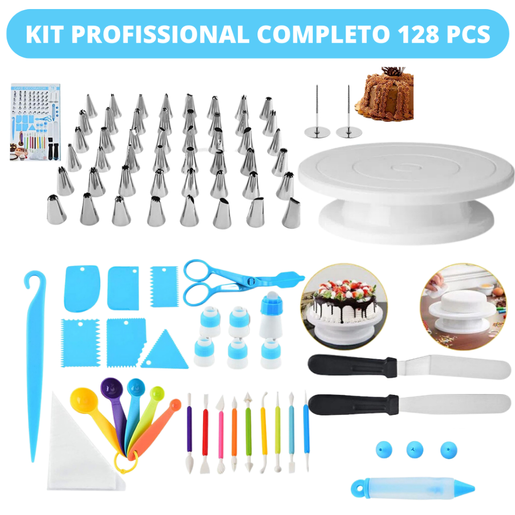 Kit Confeitaria Profissional 128 Peças Bailarina Giratória Bicos Inox Manga Espátulas Raspadoras Decoração Bolo