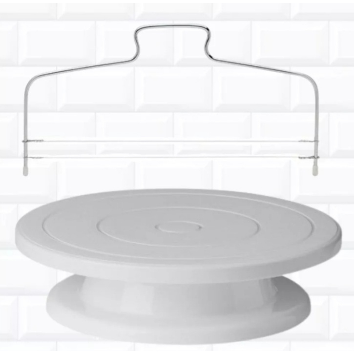 KIT Bolo Nivelador Fatiador E Conjunto Com 4 Fatiadore Base Giratória Profissional Para Confeiteiro