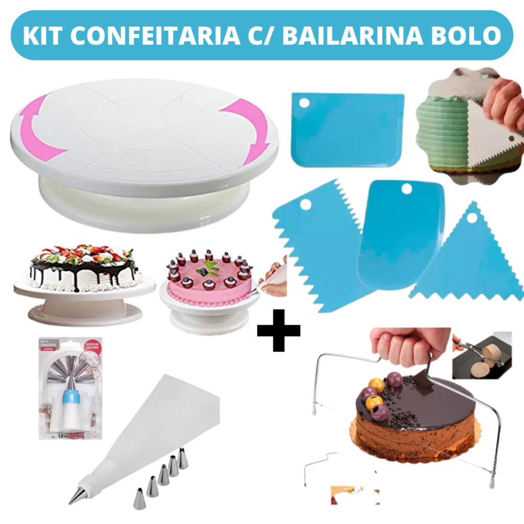 Kit Confeitaria Profissional Base Para Bolo Bailarina Giratória Raspadores Nivelador de Bolo