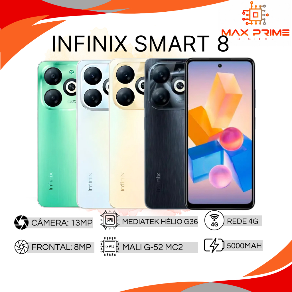 Smartphone Infinix Smart 8 128 Gb/8 RAM 5000 mAh 256 Tela HD Celular