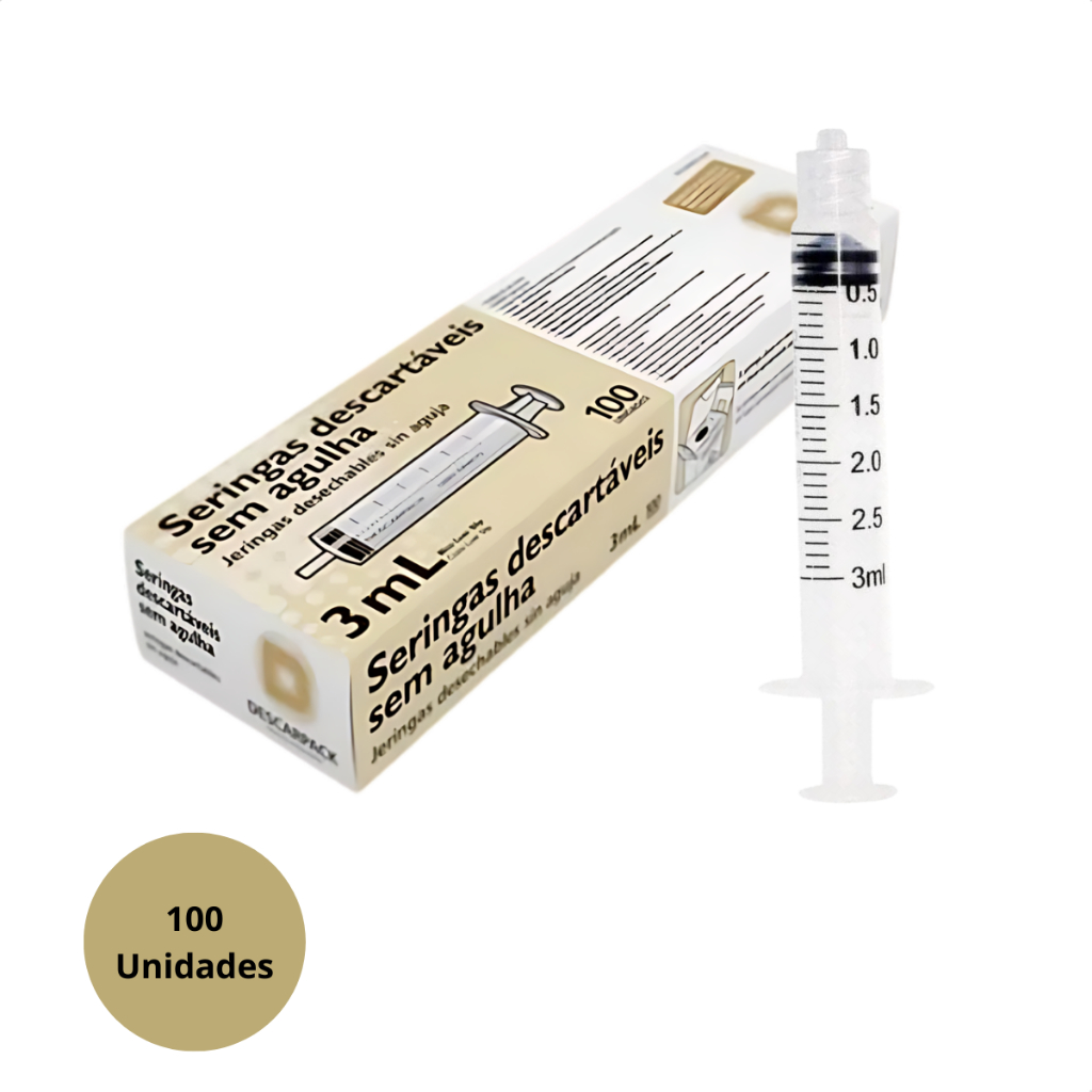 Seringa 3ml Sem Agulha Bico Slip Descartável 100 Descarpack