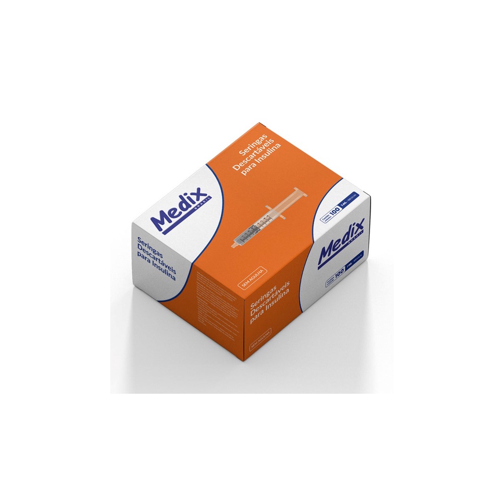 Seringa 1ml Insulina Descartável Sem Agulha Medix - 100 unid