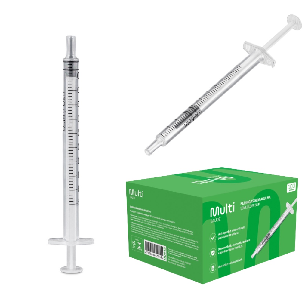 Seringa 1ML Bico Liso Multilaser Sem Agulha C/100 UN - HC442