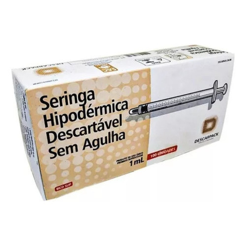 Seringa Sem Agulha 1ml Bico Slip Descartável Descarpack 100u
