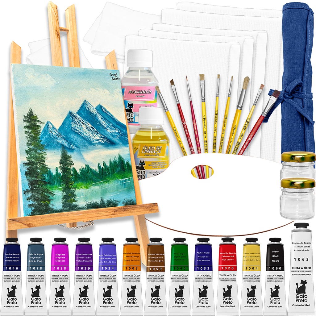 Super Kit Pintura Tinta Óleo ou Acrílica Telas + Cavalete + Estojo de Tecido + Pinceis