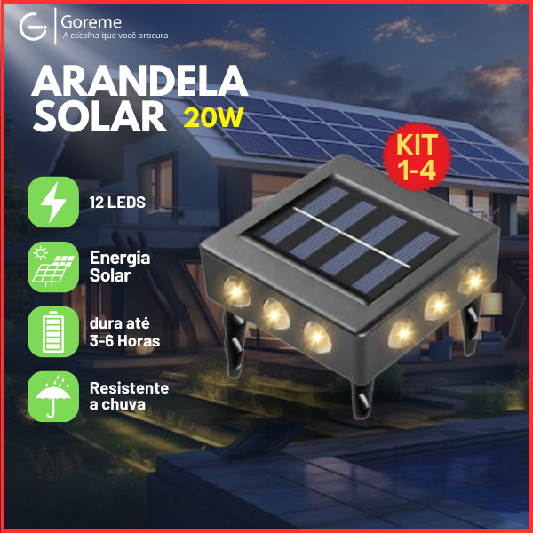 Kit 4 Luminária Arandela Solar Led 4 Focos de Luz 20W Espeto Jardim e Parede Slim 12 Leds c/suporte