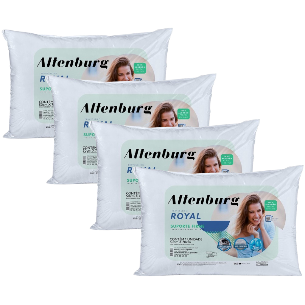 Kit 4 Travesseiros Royal 50x70cm Altenburg Travesseiro 50x70cm Tecido Percal 180 Fios 100 Algodão