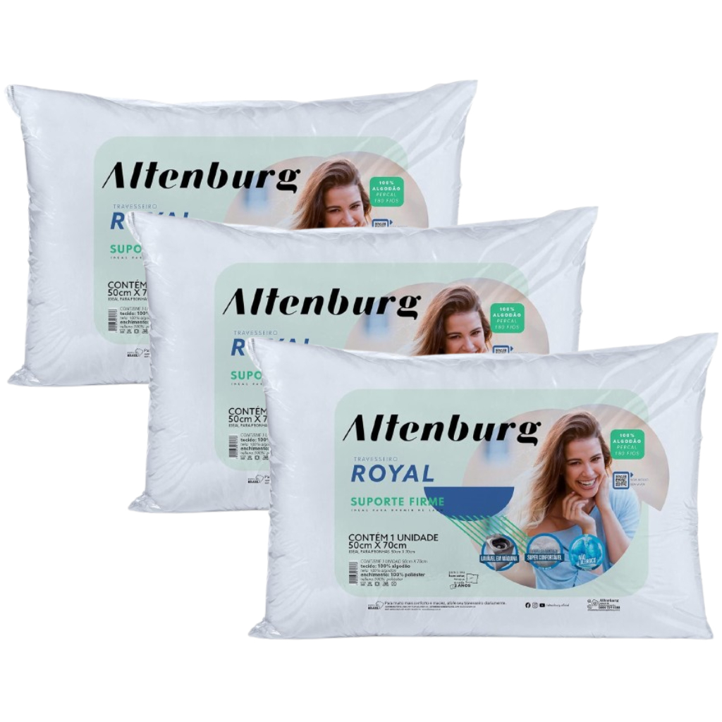 Kit 3 Travesseiros Royal 50x70cm Altenburg Travesseiro 50x70cm Tecido Percal 180 Fios 100 Algodão