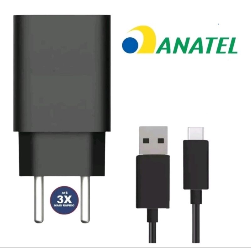 Carregador Turbo USB Tipo C Compatível Com Motorola Cabo Mais Fonte 30W Moto G E X Z