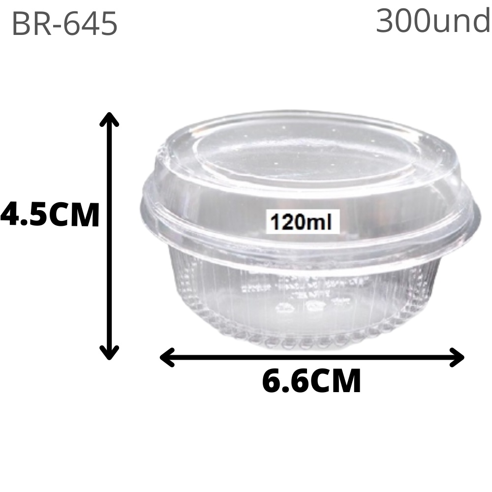 Embalagem Descartável Pote Redondo C/ Tampa Articulada 640 - 150ml Para Bolo Torta Mousse Pudim Doce