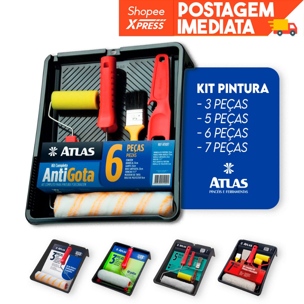 Kit De Pintura Completo Atlas 3 | 4 | 5 | 6 | 7 Peças - Iniciante e profissional parede tinta pincel