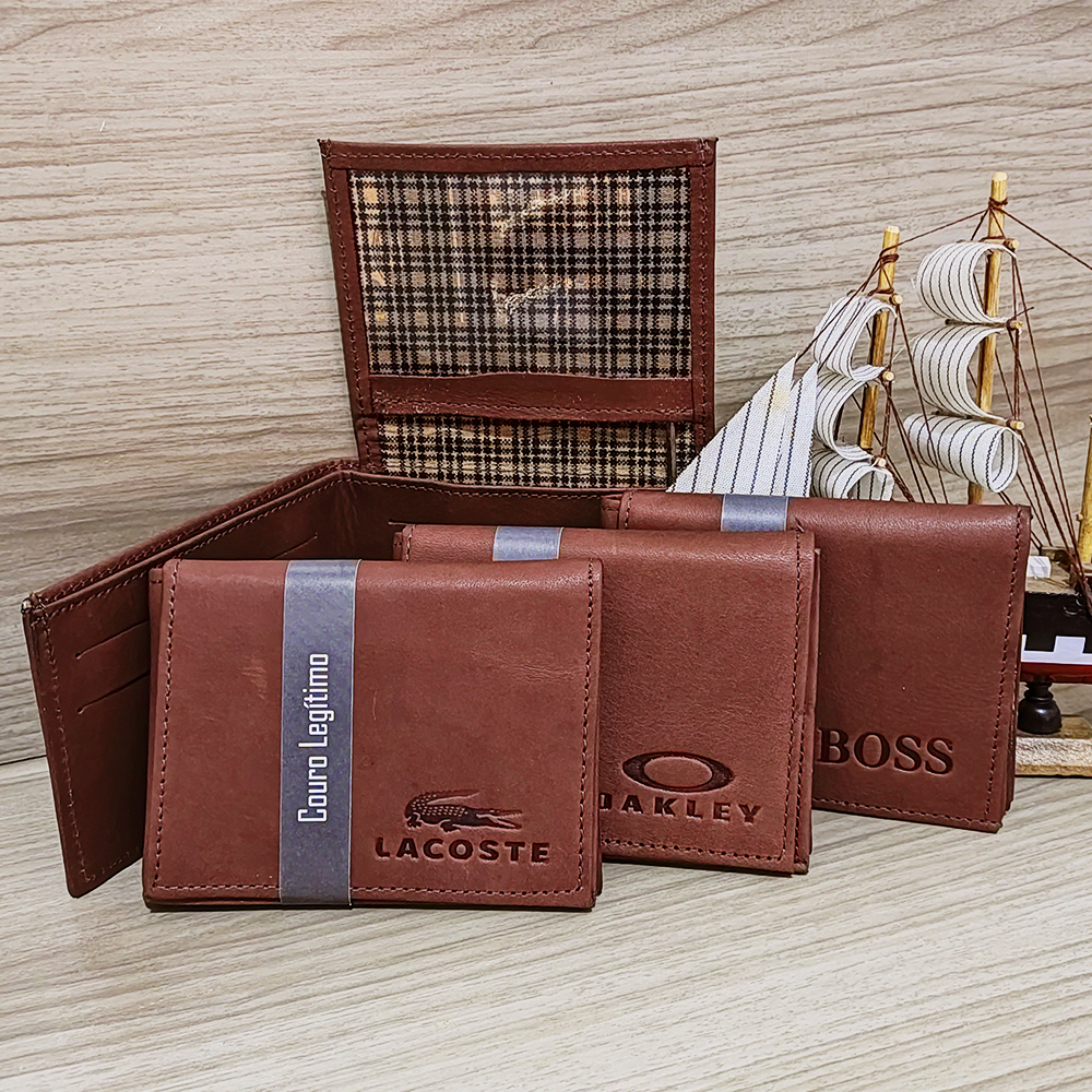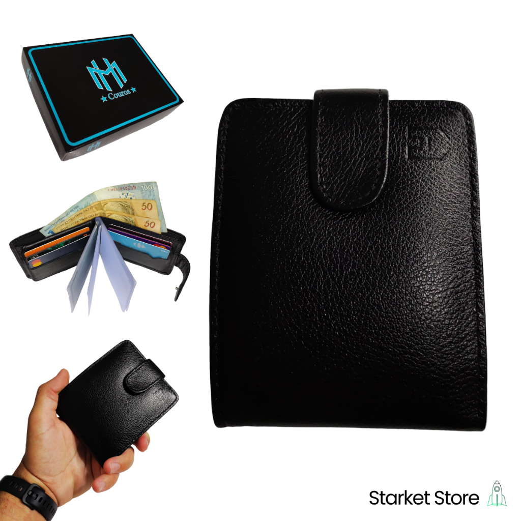 Carteira Masculina em Couro Legítimo com Fecho e porta-moedas