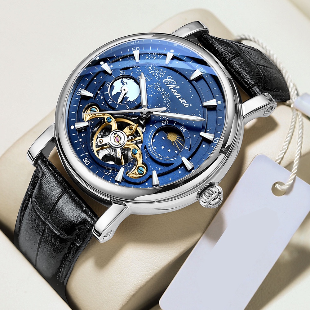 Novo CHENXI Relógios Mecânicos Masculinos De Marca Superior Luxo Pulseira De Couro Moda Negócios Relógio Para Homens Esqueleto Automático Luminoso