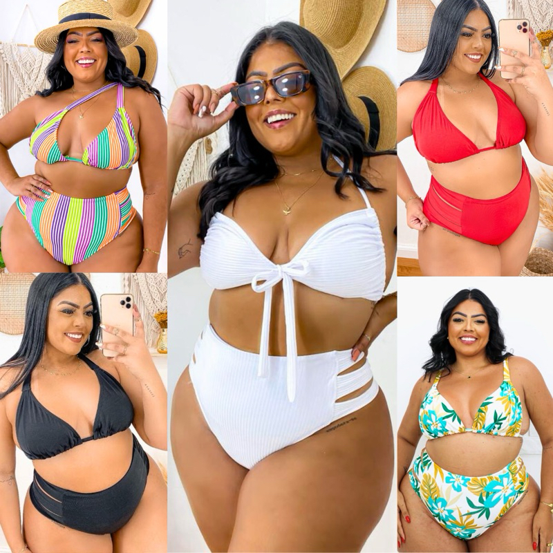 Biquíni Plus Size Cintura Alta Hot Pants Conjunto Cortininha Moda Praia Verão Feminino