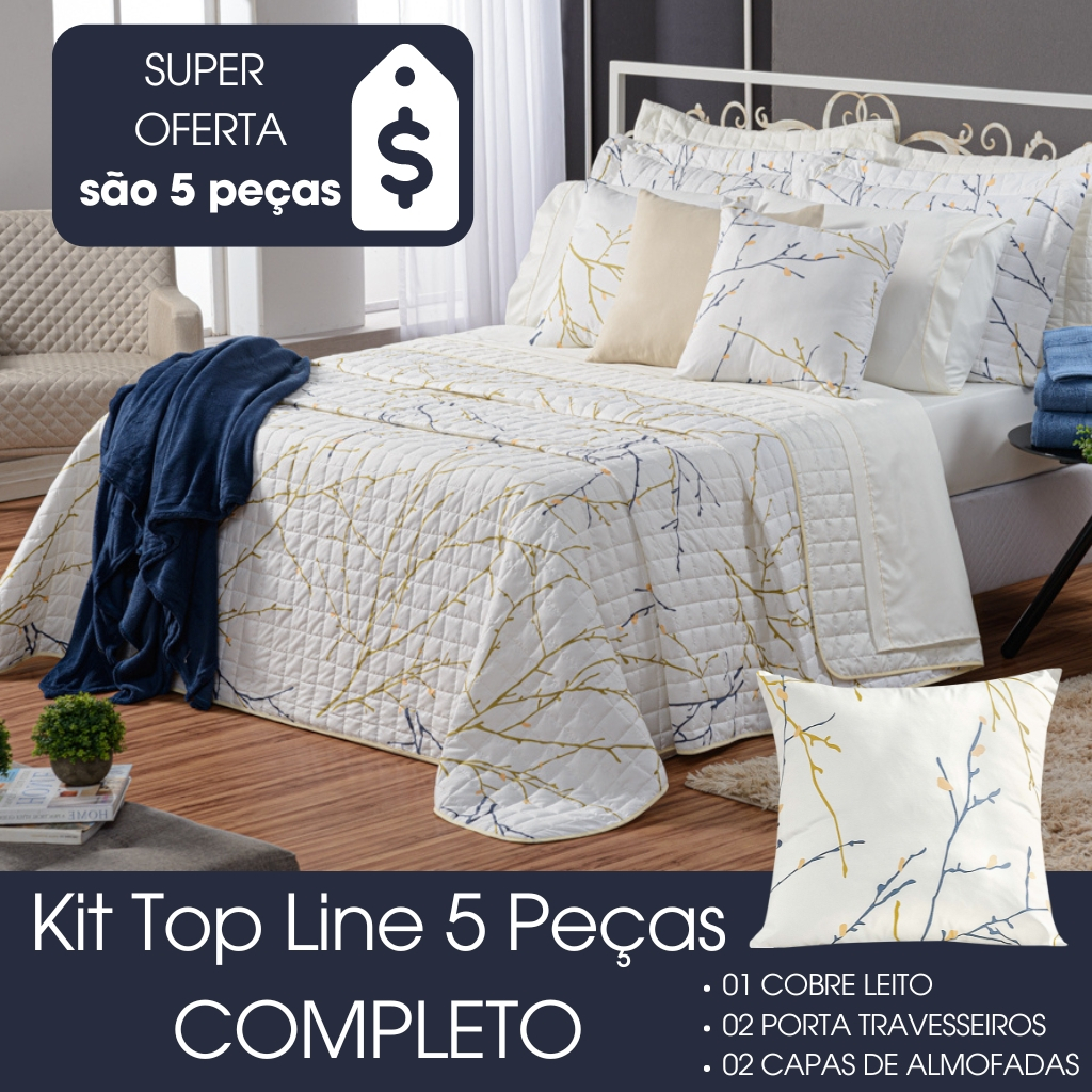 Kit Cobre Leito King COMPLETO Top Line 5 Pçs Estampado 180 fios com capa de almofada