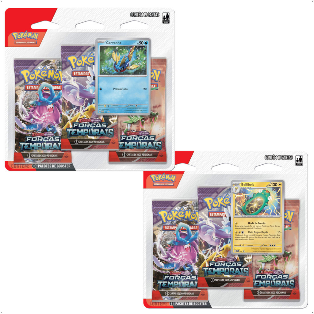 Pokemon 2x Blister Triplo - EV5 Forças Temporais Carvanha e Bellibolt TCG Estampas Ilustradas Copag - 33972