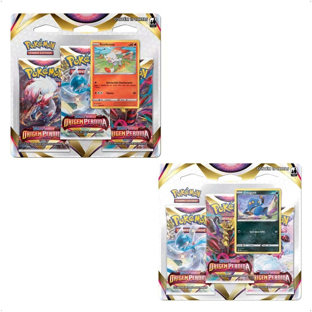 Pokemon 2x Blister Triplo EE11 Origem Perdida Scorbunny e Croagunk TCG Estampas Ilustradas Copag - 31658