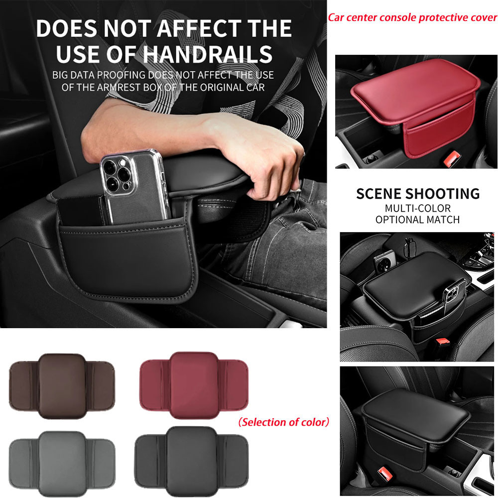 Tapete De Couro PU Para O Braço Do Carro Com Saco De Armazenamento Centro Console Auto Armrests Caixa Almofada De Proteção