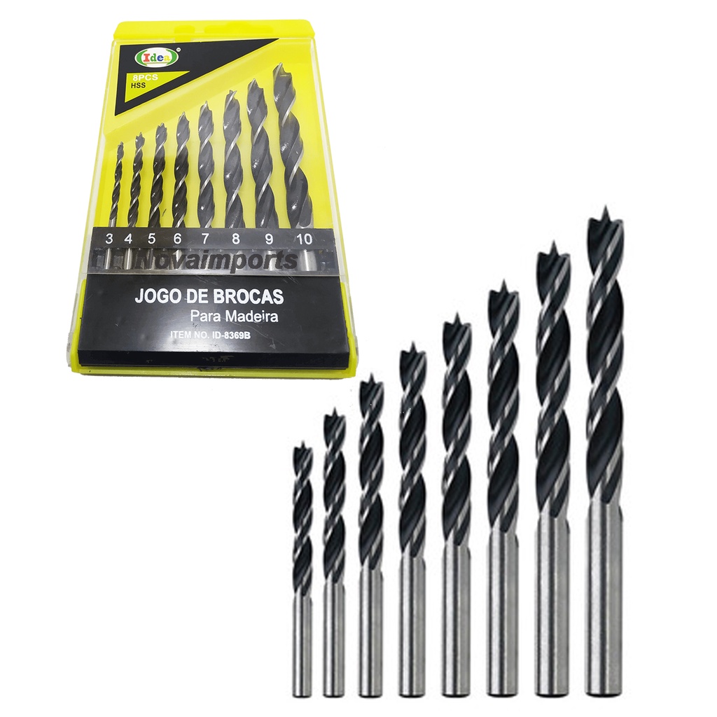 Jogo de Brocas para Madeira de 3 a 10mm com 8 Peças