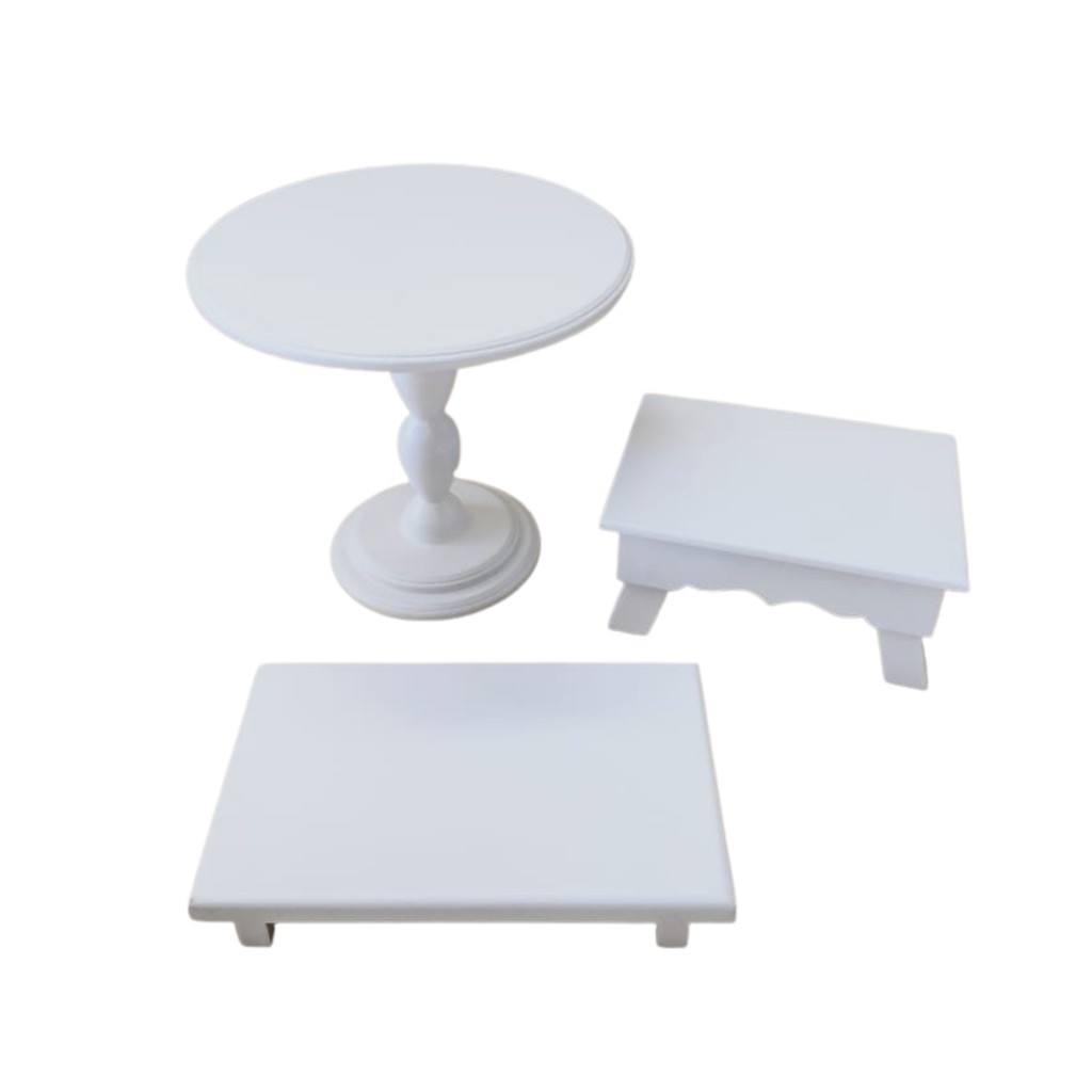 Kit Boleira Torneada em MDF com Bandeja E Banco Prato Para Doces