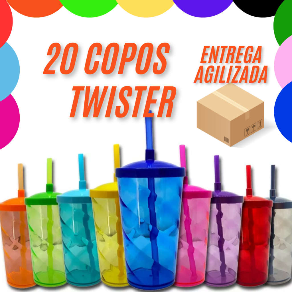 20 Copo Twister 500ml Com Tampa E Canudo VARIAS CORES ENVIO IMEDIATO