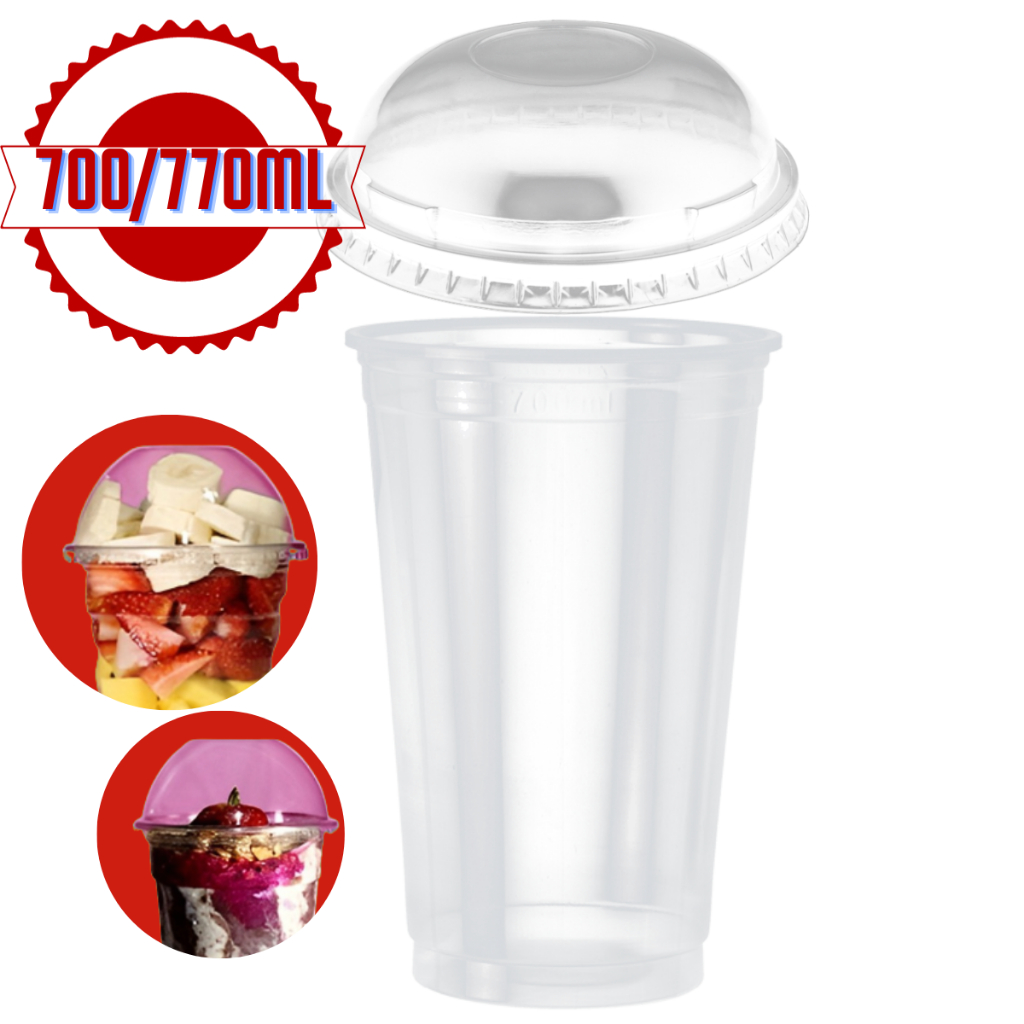 Kit c/ 30 Uni Copo e Tampa Bolha 700ml / 770ml Transparente Plástico
