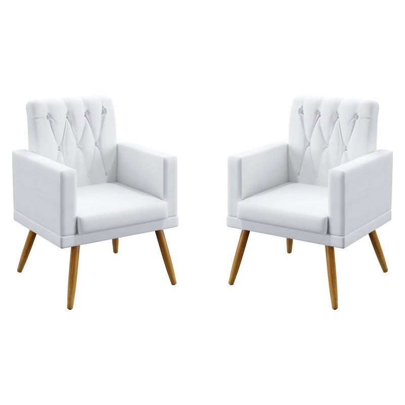 Kit 2 Poltronas Decorativas Estofadas Vega Rodapé e Botões Para Sala de Estar Couro Artificial Branc