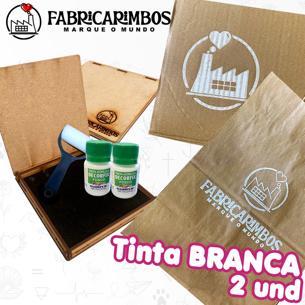 Almofada para Carimbo com Tinta Branca para Papel / Kraft / Papelão - kit carimbeira + 2 tintas + 1 rolinho de espuma