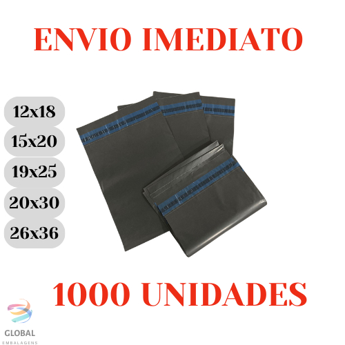 Kit Envelope de Segurança com 1000 unidades embalagem cinza auto colante - Varias medidas
