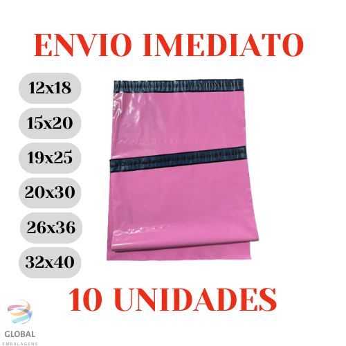 Kit 10 Unidades Envelope De Segurança ROSA com aba adesiva embalagem correio ecommerce