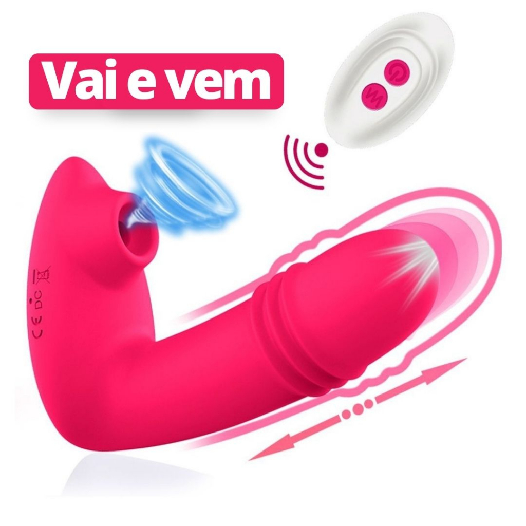 Vibrador Feminino Função Vai e Vem Estimulador 2 em 1 Ponto G e Sugador Clitóris 20 Frequências Diferentes Com Controle Remoto
