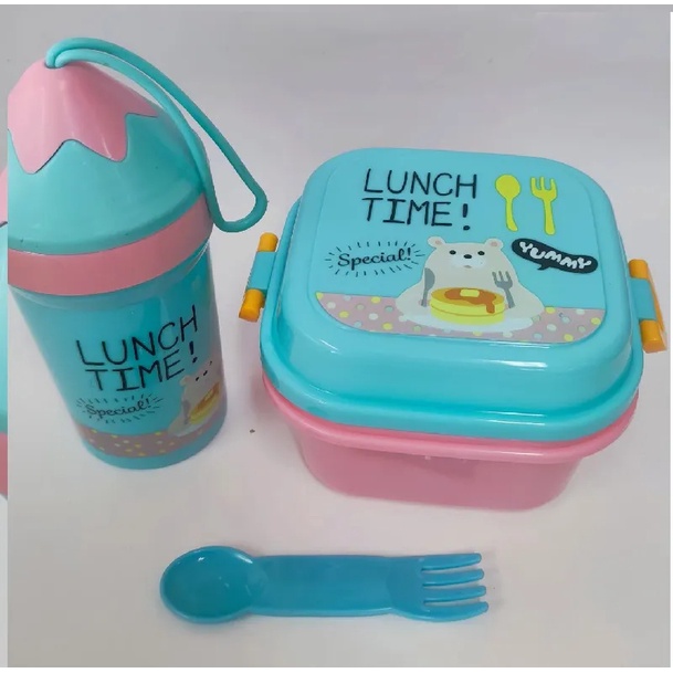Kit Pote Marmita Infantil Com Divisória E Talher + Garrafa