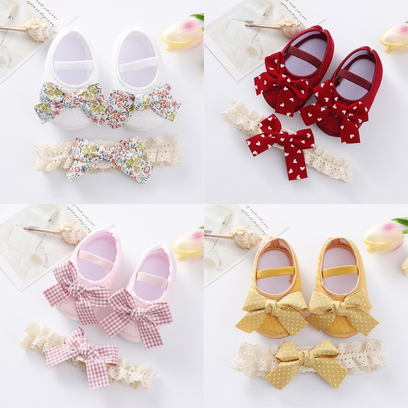 Sapatos Para Bebês Meninas Recém-Nascidas Planos Com Fita De Cabeça De Laço De Solo Macio Toddler Baby First Walkers 0-18mês
