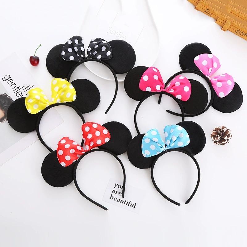 Faixa de cabeça de Minnie Mouse/Laço de orelha de Mickey Mouse bonito Grampo de cabelo/Tiara de show de férias para crianças