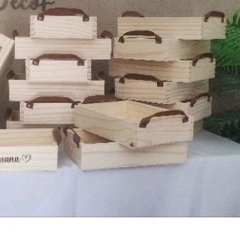 kit atacado com 10 caixas de.madeira pinus com alça de couro.