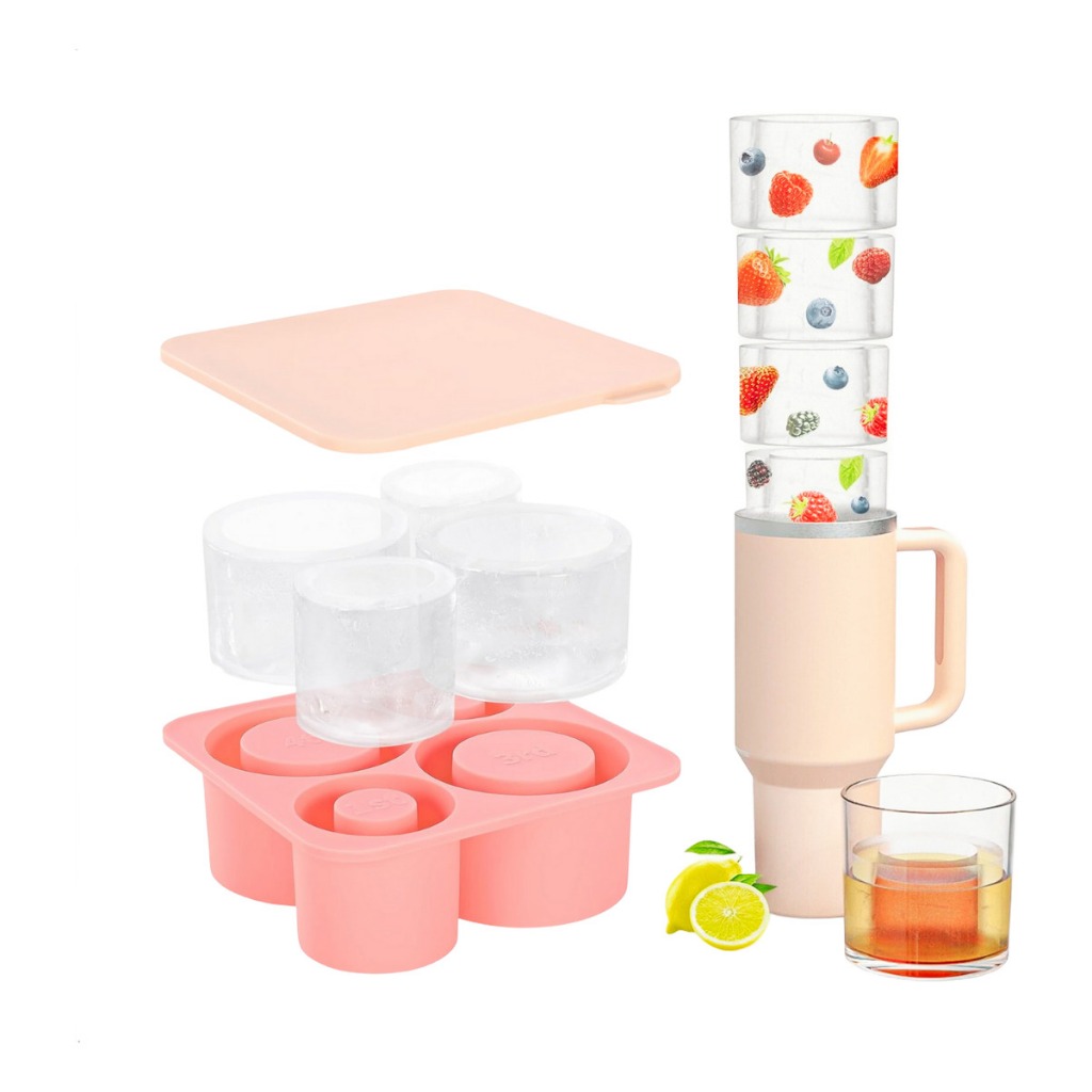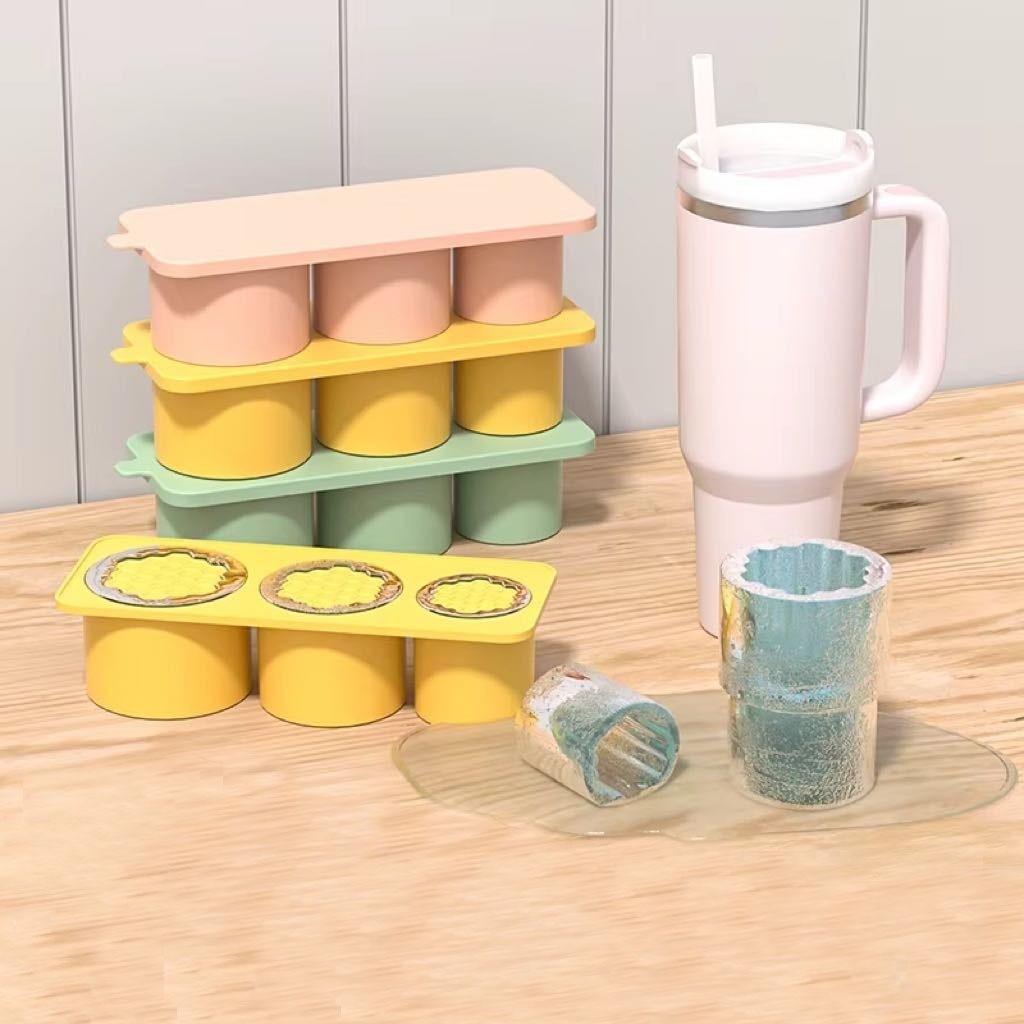 Cilindro Bandeja De Cubos De Gelo Para Copos De Stanley , Moldes De Silicone Reutilizáveis De 3 Grades Café Com Suco De Bebida