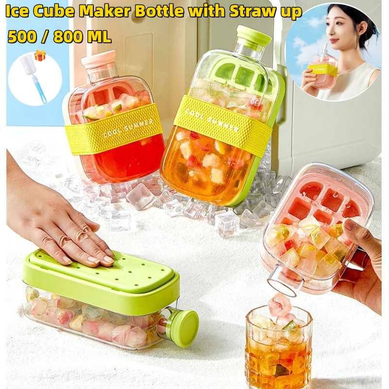 Garrafa Para Fazer Cubos De Gelo Com Tampa De Palha Molde Bandeja À Prova De Vazamentos De Qualidade Alimentar Verão Cas