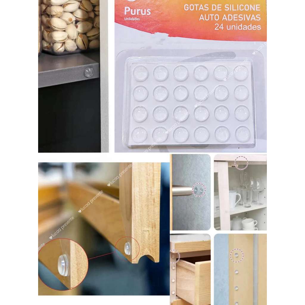 Protetor Anti Impacto Barulho Adesivo Silicone Transparente Cartela 24 Peças Pingo Bolinha Pequena