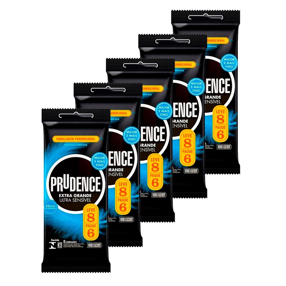 Preservativo Prudence Extra Grande Ultra Sensível Maior Mais Fino Pacote com 8 Unidades (Kit com 5)