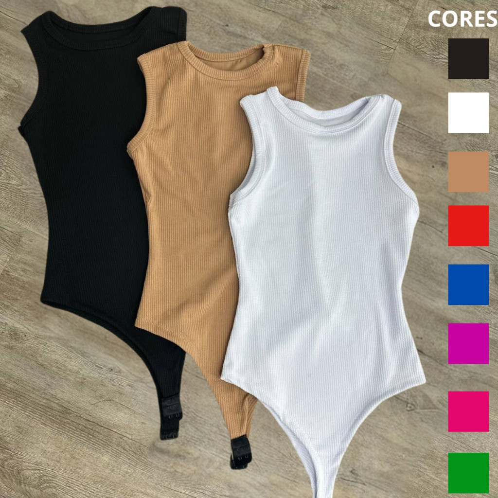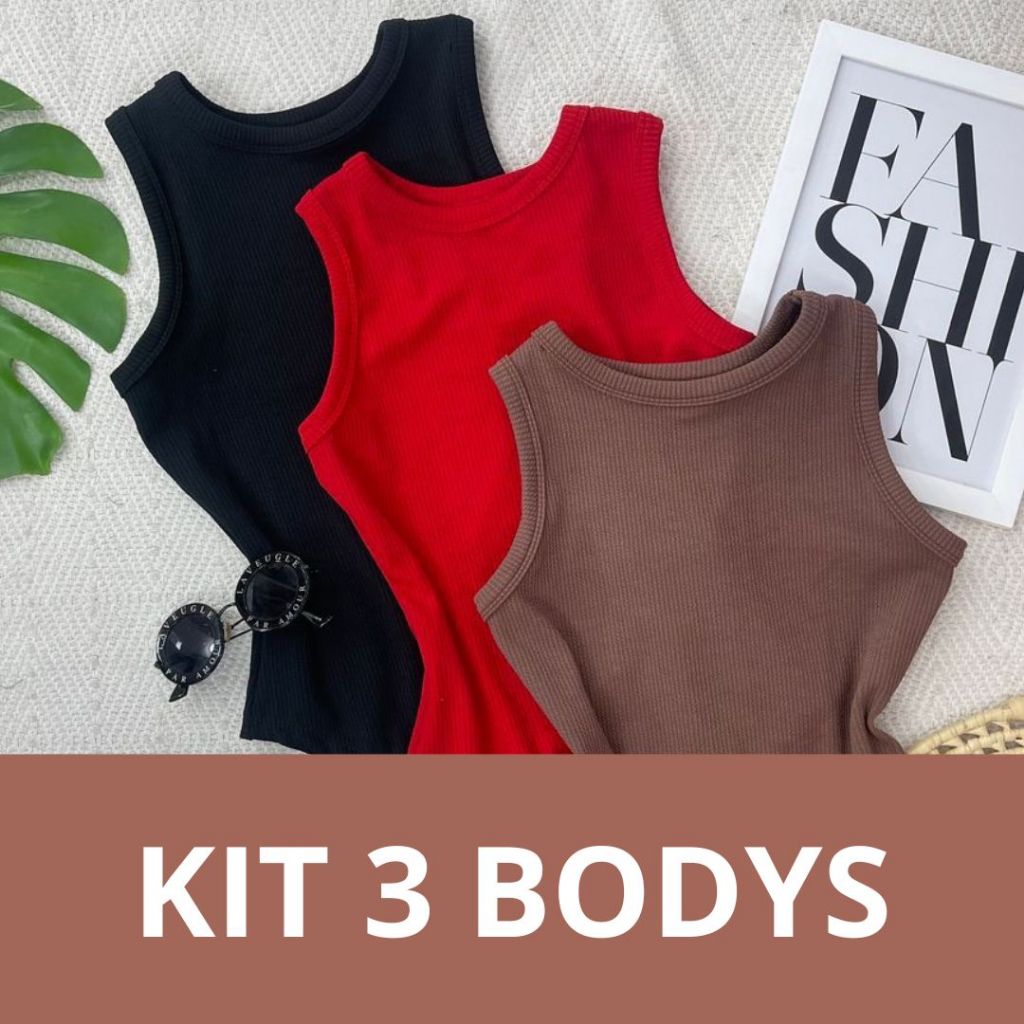 KIT 3 Body Feminino Atena Canelado Regata Premium Ana ruga