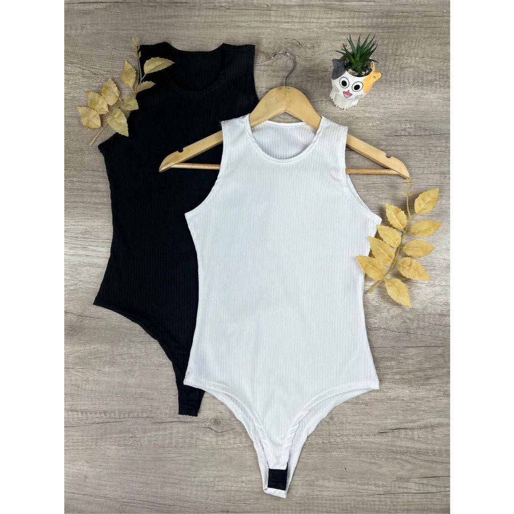 Kit 2 Body Feminino Canelado Anarruga de Algodão Regata