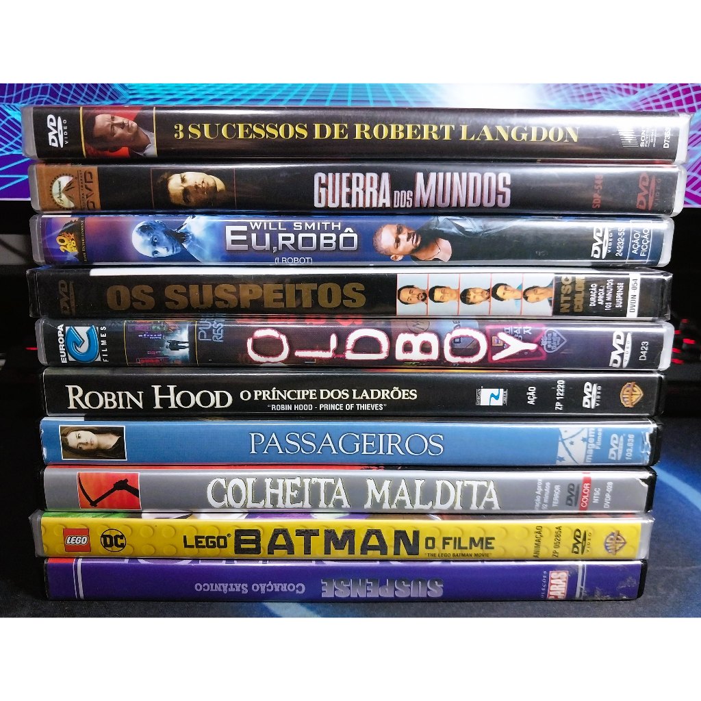Pack Coleção Lote DVD 12 Filmes - O Código Davinci / Anjos e Demônios / Inferno / Guerra dos Mundos / Os Suspeitos / Coração Satânico / Oldboy / Eu, Robô / Passageiros / Colheita Maldita / Lego Batman O Filme