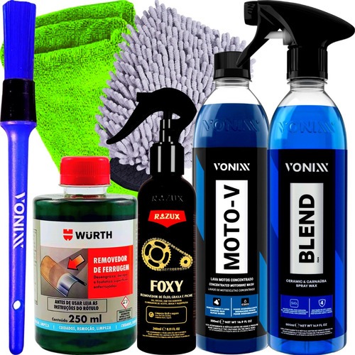 Kit Limpeza de Moto Estética Vonixx Shampoo Para Lavar Tirar Barro V-Mol Removedor de Graxa Óleo Corrente Foxy